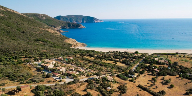 La plage d'Arone est remarquable par son décor, entre grande baie ouverte, plage de sable doré, et le Capo Rosso en arrière plan !